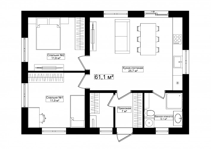 • Общая площадь 61 м2